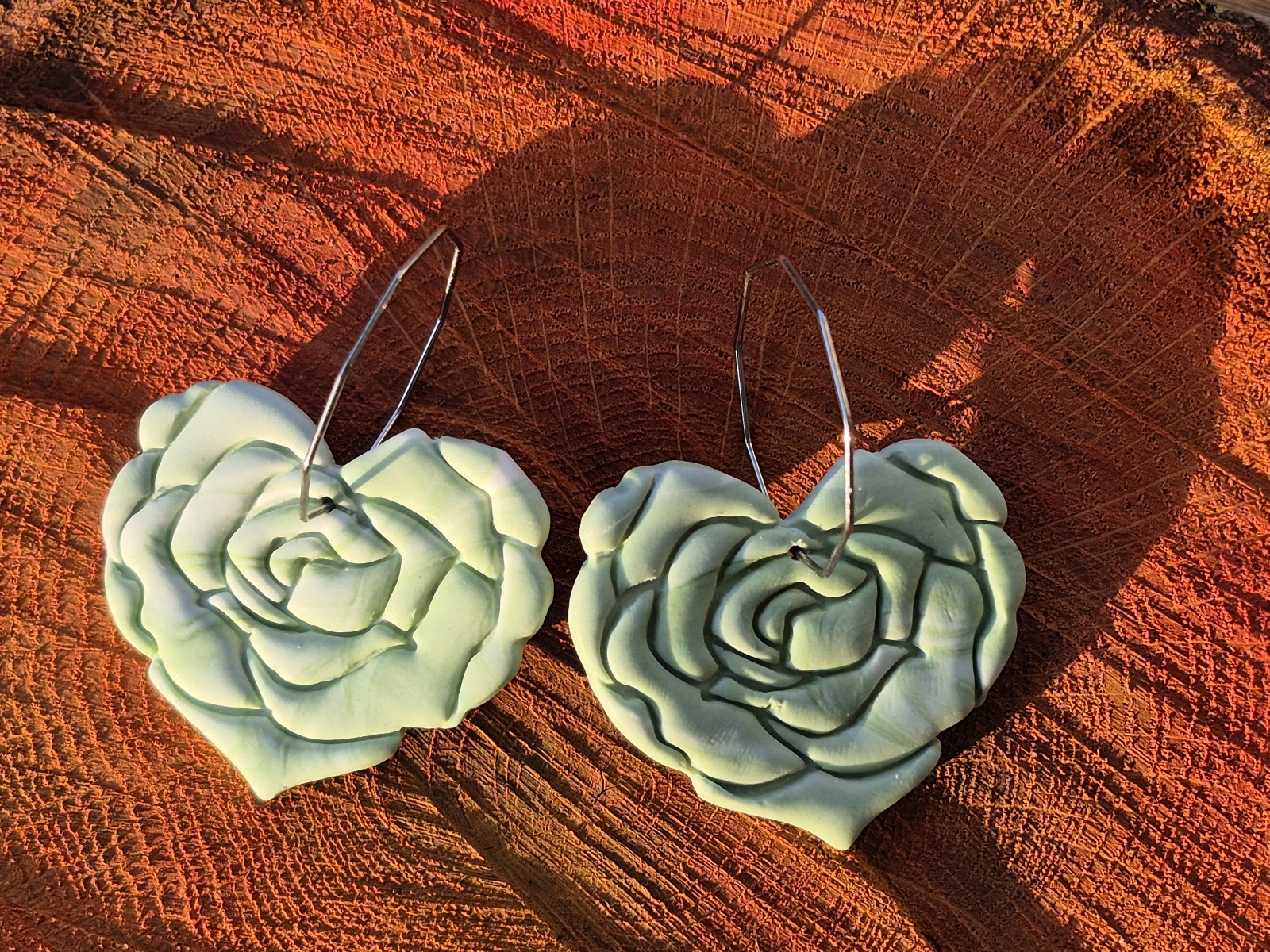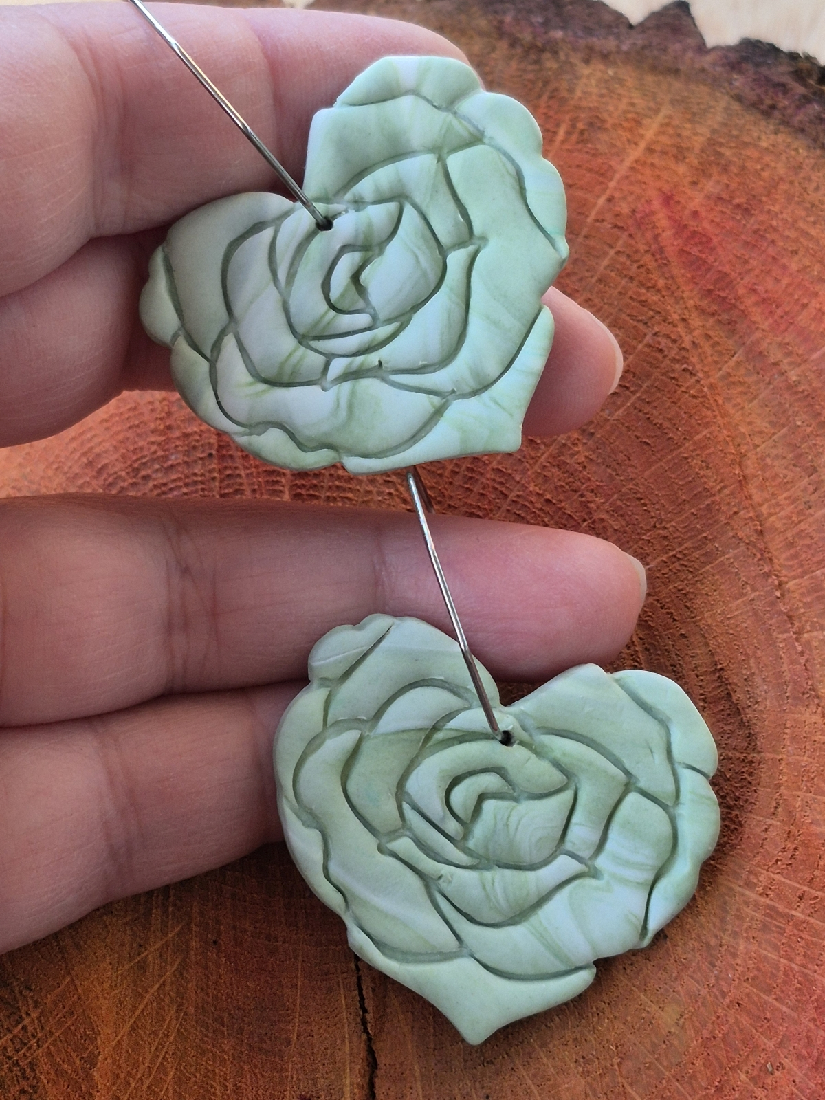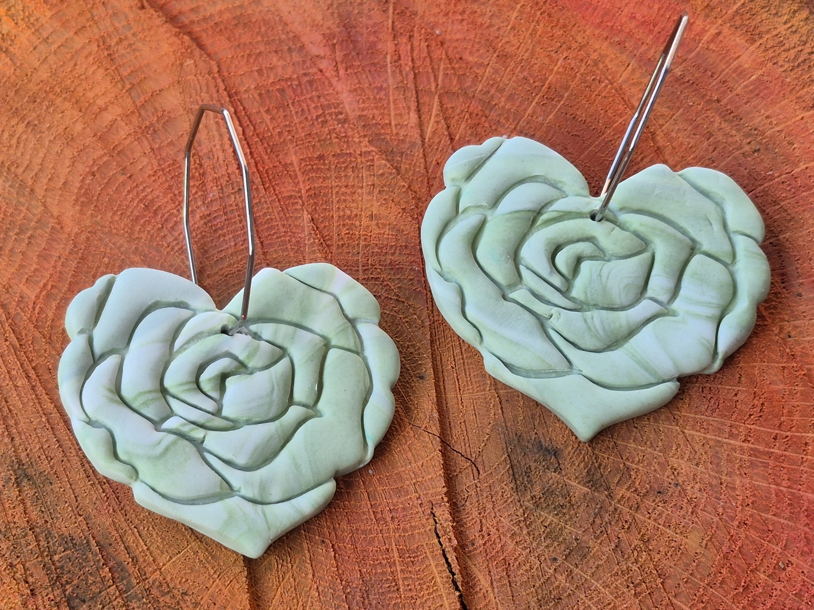 Cercei statement Sufletul Trandafirilor - Cercei floare de trandafir în formă de inimă din lut polimeric cu prindere hoops