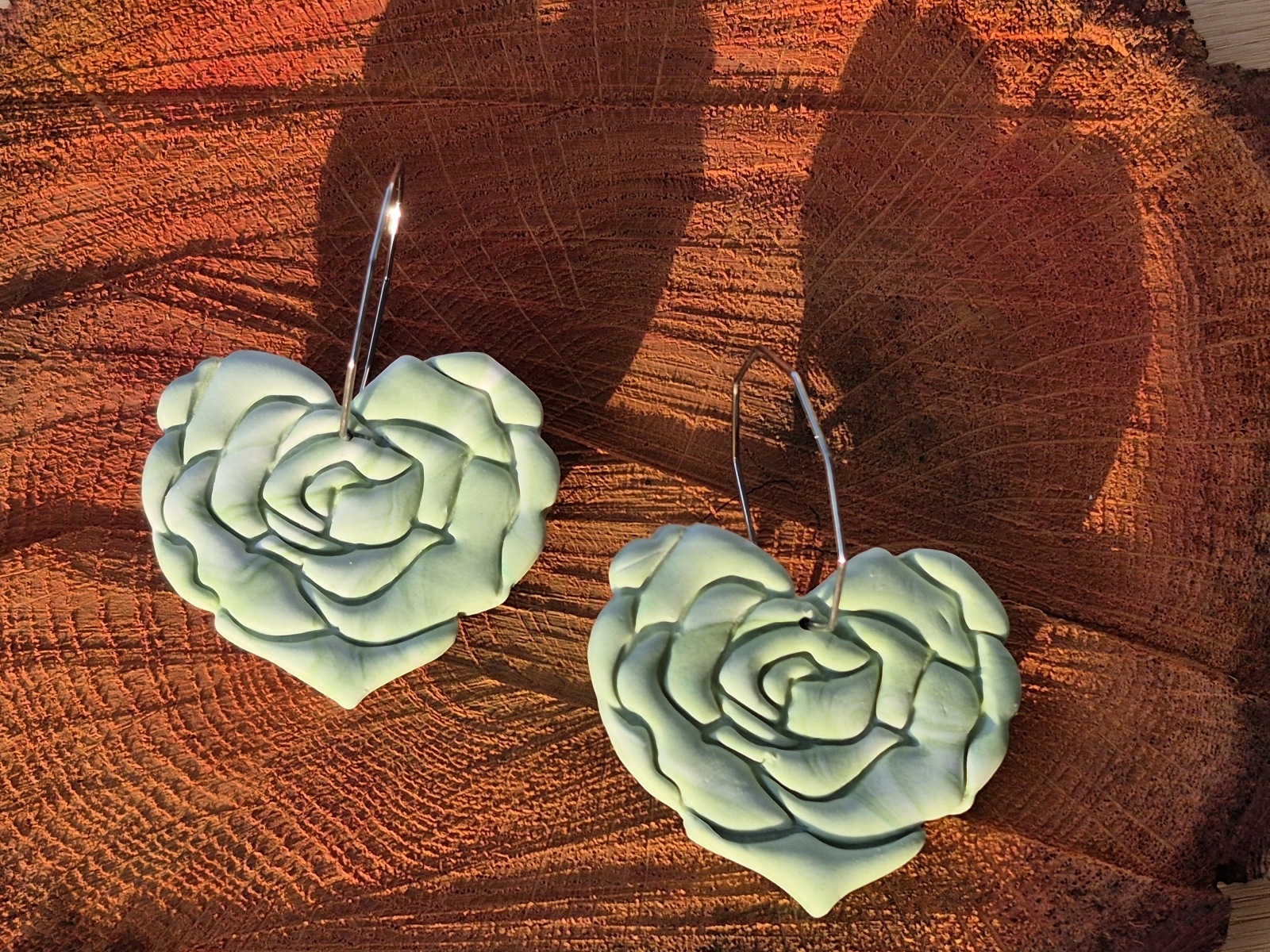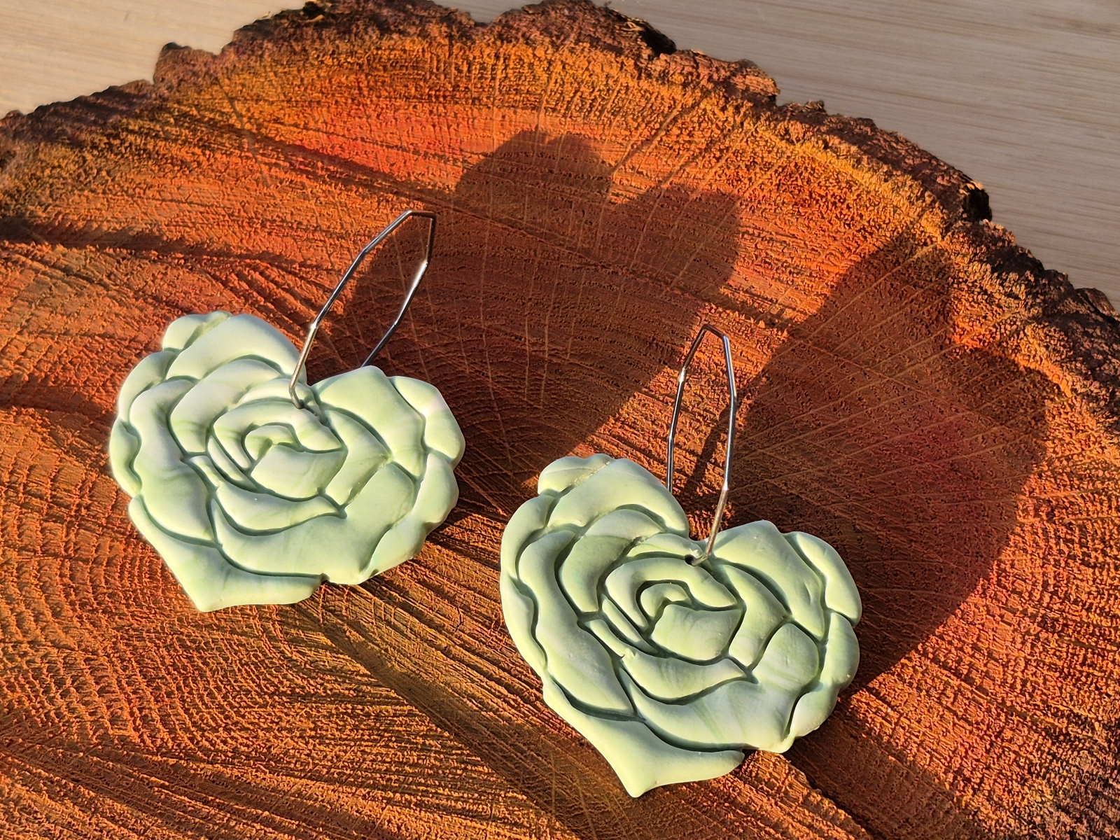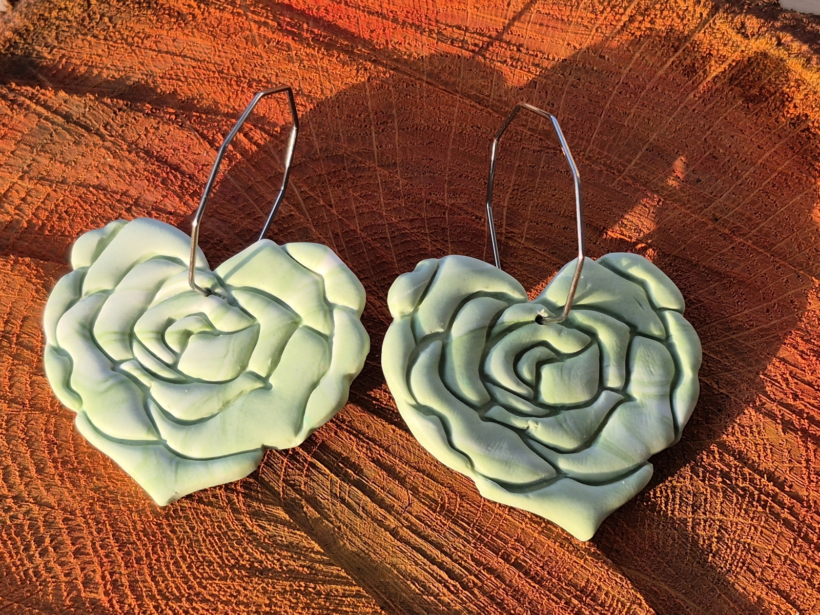 Cercei statement Sufletul Trandafirilor - Cercei floare de trandafir în formă de inimă din lut polimeric cu prindere hoops
